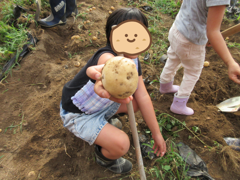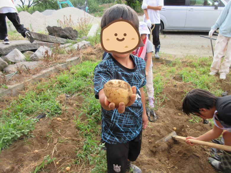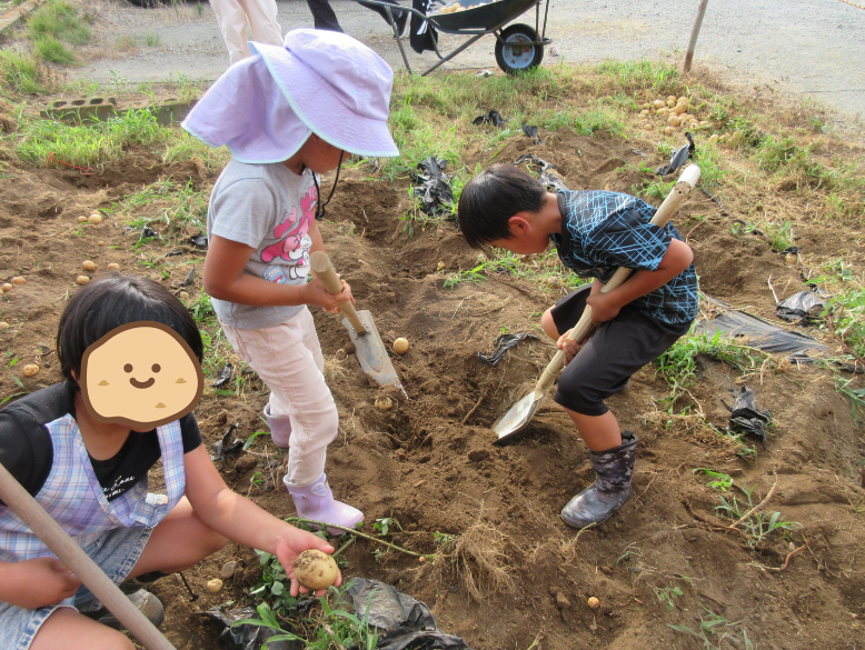 畑だより⑨ ~じゃが芋掘り~ 待ちに待った じゃが芋掘り! …だったのですが 今年は暑さの影響なのか不作。そして 小ぶりのじゃが芋たちでした。 大きいじゃが芋は お世話になっている方へプレゼント。残りのコロコロじゃが芋たちは、みんなでいただきましょう! ~数日後~可愛いお礼のメッセージが張られていました!!とっても嬉しいサプライズ。こちらこそ ありがとう♡