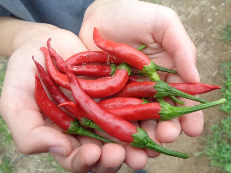 畑で採れた唐辛子を干して、自家製鷹の爪を作りました。