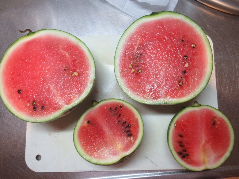 畑だより⑪ 10月なのに暑い!夏野菜たちもまだ実をつけてくれています。季節外れのスイカも採れました! 期待せずに 切ってみると・・・えっ・・・いけるかも? 期待せずに 食べてみると・・・えっ!?いける!!シャキシャキのサッパリすいかでした! これで食べ収め。今年最後の夏の恵みに感謝です。