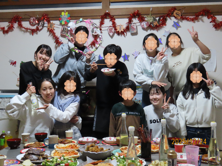 クリスマス会2025 いよいよ今年もやってきました! クリスマス♪ この日は、子どもも大人も 夜のパーティーに向けて、朝からバッタバタ(汗) ごちそういっぱい イベントいっぱい 子どもも大人も みんなで楽しみました♪