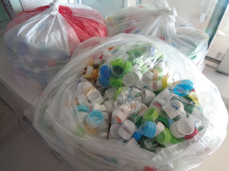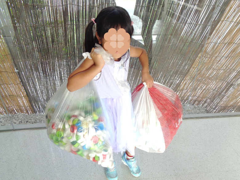 ペットボトルキャップの寄付 前回のキャップの寄付から、1年半。こんなに集まりました! ドーン!! このキャップたちは、いずれプラスチックに戻って文房具やおもちゃに生まれ変わるそうです。 実は、自分たちも使っていたりするのかも…!?