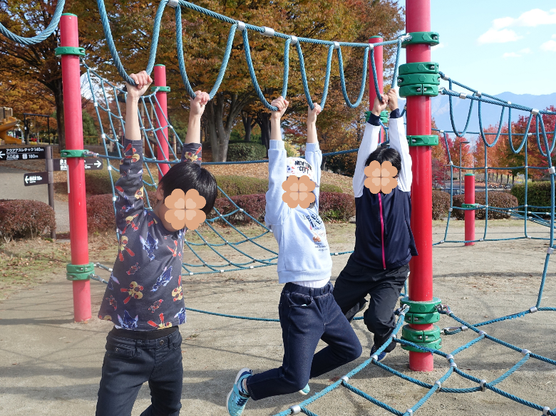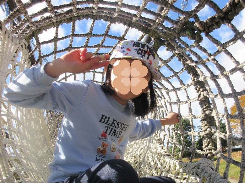 公園で遊ぼう♪(秋) 運動会の振替休日の日。気持ちよく晴れて、お出かけ日和です! 近くのフルーツ公園に来てみました。 夏は噴水プールでしたが、秋は紅葉狩り!アスレチックで遊んで、弁当を食べて、秋を楽しみました。