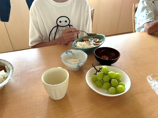 たくさんの果物と野菜の寄付をいただきました(2025年秋) 実りの秋、クローバー学園の周りの畑では、たくさんの果物が実り始めました。 ご近所の方を始め、農家の方から、ぶどうや梨などの果物から、かぼちゃやナスなどの野菜までたくさん頂戴しました。 いただいた果物や野菜は、もう一品として加えて出したり、食後のデザートとして美味しく頂戴しました。皆さま、ありがとうございました!